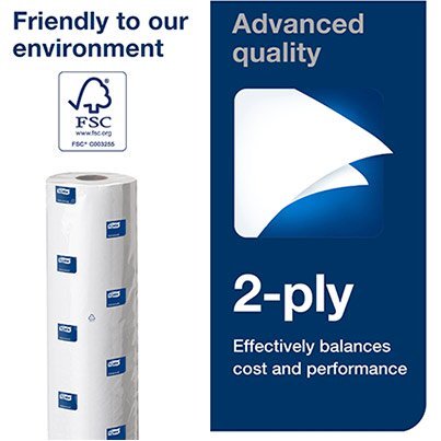 Ensure your patient couch stays hygienic with Tork Advanced couch roll, a 56-metre roll made up of 165 disposable 2-Ply sheets. The perforated sheets are ideal for maintaining a high level of hygiene in healthcare environments and is exceedingly easy to install into Tork couch roll dispensers.