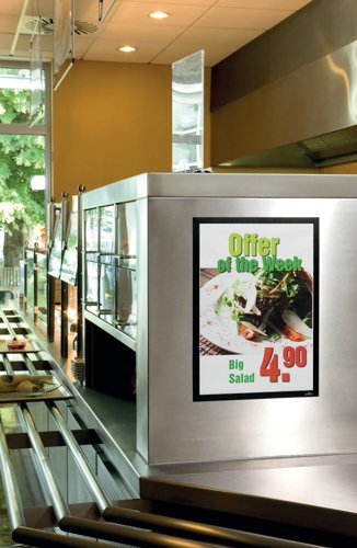 | Frame looks identical from both sides for dual messaging on glass |