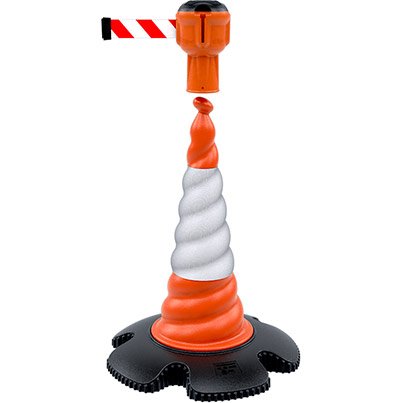 | Two-piece traffic cone that incorporates a helix design which deflects wind and aids stability |